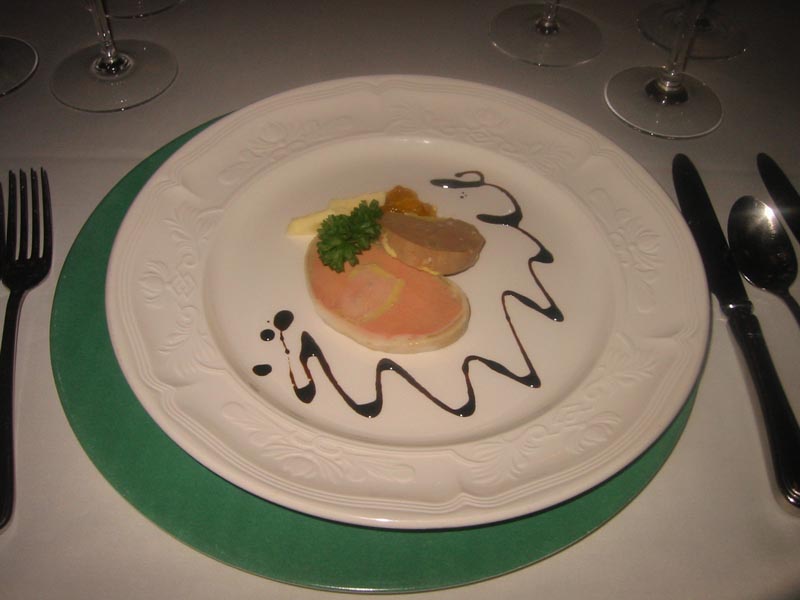 Krožniki, ki prihajajo iz kuhinje so preverjeno dobri, sestavine so sveže, dodelava jedi je popolna, prezentacija tudi. Mogoče pri slednji šepa le polenta z jurčki, briejem in tartufi, ki se sliši precej bolj elegantno, kot pa izgleda. Če nasproti vas nekdo naroči mastna gosja jetra – foie gras z breskvijo in čebulno marmelado mu lahko zagotovo zavidate styling krožnika, okus sočnih jeter in sveže sladkosti popečene breskve pa še nadgradi pikantnost čebulne marmelade. Pri glavnih jedeh sva najprej mislila, da je prišlo do pomote in da sva oba dobila isto stvar: enakomerno narezani rožnati koščki mesa z omako in prilogo. A okusa sta bila seveda različna: perutninsko sladkasta sekcija je mlaskala ob sočnih rezinah fileja račjih prsi v pomarančni omaki, jagenčkov hrbet pa se je v spremstvu rahlo zapečenih žafranovih rezancev kopal v dišeči timijanovi omaki. Vidite – nič posebnega, nič noro spektakulernaga, nič eksperimentiranja: ampak vse pripravljeno zelo natančno.