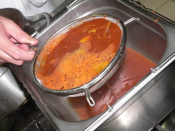 vegete, začinke, kocke, vrečkaste župe in ostala z natrijevim glutaminatom našponana košta nikoli ni prav resno bivakirala v naših domačih omarah, kaj šele piskrih, zdaj ima pa že kar nekaj let absolutno prepoved približevanja šporhertu na manj kot 150 metrov … chef namreč prav rad nakuha in potem zamrzne kakšen fond, še največkrat piščančjega, zelenjavnega, pa tudi ribjega … iz česar potem z nadaljnjimi kuhinjskimi manipulacijami nastajajo župe, omake, rižote itede … do včeraj je fontanje potekalo samoučno in s pomočjo literature, včeraj pa se je chef dal podučiti, kako to rade klasičko naobrazovani francuzi … na delavnici pri ericu smo si po jutranjem srebanju kofeina in teina zavezali predpasnike, pripravili beležnice, zavihali rokave in do enih nakuhali tri fonte, dvanajst omak in eno župo … začnimo v baznem taboru, čez kakšen dan pa še o omakah, ajprow? … alzo: fondanje, osnovanje ali bazenje ni nič kaj težka in komplicirane reč, ob primerni organizaciji imaš lahko vedno na zalogi kakšen zamrznjen lonček okusa … ribja, rakova in telečja baza se naredijo takole: