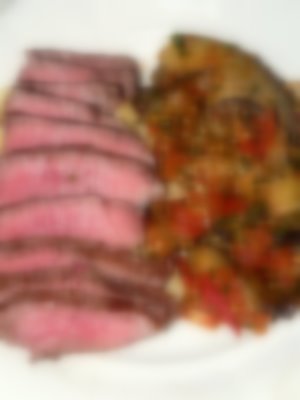 - dva dvocentimetrska stejka, naj bosta od rostbifa, če tega ne najdeš, sta lahko tudi od kakšnega drugega kosa, pazi samo, da je fletno prepreden z nitkami maščobe, ker drugače bo sušnik in ne stekić, kot se zagre