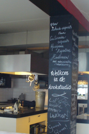 zadnje tavanje po nizkotni deželi brez orientacijskih landmarkov, je v kruhovinskem smislu postreglo s kar nekaj heci … recimo s pustošenjem dobro založenega hladilnika z belgijskimi piri (orval, chimay & kwak inclusiv) v eindhovenskem eetcaffeju de baron … kljub veselim uricam pri baronu velja opozoriti, da so za vzdrževanje kondicije med celodnevnim pohajanjem po tlakovanih ravnicah veliko bolj kot belgijski žmohtni in močni dubleti in tribleti, prikladni osvežilni grenki zvarki plzenskega tipa holandskih pivovarjev, na prvem mestu branda in na drugem grolscha, vsekakor pa se gre v velikem loku izogibati precej bedne, profane in težke bavarie … od jestvin je fino želodčno steno pred pirovskimi nalivi impregnirati s kakšno porcijo fritjesov, ki jih na onem koncu cvrejo v velikih bazenih z redno menjanim oljem in so zato prav fleten snack, ne pa tudi zdrav, sploh ker so domorodci pri serviranju jako radodarni z majonezo … na holandskem je dobro piti tudi zato, da te potem, ko ješ, ne moti, da hrana nima nobenega okusa … čeprav: blizu endhovenskega barona, malo naprej po kleine bergu je en prav fleten obrat, aangenaam culinair se mu reče, gre pa za mešanico kuharske šole in restavracije … stvar deluje tako, da sebe in svojo druščino najaviš šefu patricku, potem pa skupaj z njim kuhaš kosilo/večerjo s tremi ali štirimi rihtami in se od njega kaj pametnega naučiš, poješ in plačaš … fin koncept, prijeten ambient, sproščeno vzdušje … po mojem kar zicer, čeprav je bil, ko sva z mihom pokukala vanj, kokstudijo z detajlom likalnika čisto prazen … kam so šli vsi? … hm, ne vem, mogoče semle: