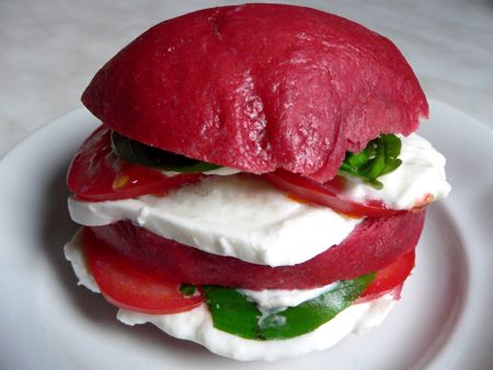 tole je bloody sendvič brez krvi! … no animals were harmed during production of this delicious product … razen bivolice, ki so jo malo vlekli za vime, da so lahko naredili mocarelo bufalko in slovenske krave, ki je prispevevala deci mleka za majonezo … takole ga lahko sestaviš tudi ti …