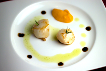 kompletiranje: na krožnik položi dve kapesanti, dodaj žlico kreme, pokapljaj s koprčevim oljem in malo balzamičnega kisa …
