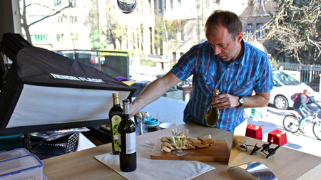 kaj dela? … ja, no, saj vidiš kaj: pripravlja se, da bo fotkal en kruh in eno vino … jaz sem fotko že videl, ti pa še ne … jo boš pa lahko, če boš čez slabega pol leta zavil v kakšno knjigarno in polistal po kuhinji za prave moške, ki jo bo izdala cankarjeva založba … včeraj sva s tomotom v salonu id doma zašpičila prvi foto sešn in kot prava moška sva delala na polno in brezkompromisno, od zgodnjega jutra do poznega večera … tako bo še ene parkrat … pa tudi kakšen dolg, za urejevalnikom besedila preživet večer mi ne gine 🙂 …