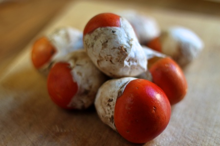 poleg naštetih divjačinskih gob seveda maramo tudi udomačene primerke šampinjonov, šitak in ostrigarjev … ampak če pa na naše talarje  prilomastijo karželjni, sem pa kar močno željan to deliti z vami … prvič je bilo še poleti, ko jih je na fešti (ki še čaka na popis) k žlikrofom in pečenemu kozličku priložil franci pivk, nad-majstor svog zanata iz kendovega dvorca v spodnji idriji: