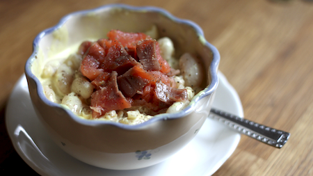 no, evo nas nazaj: noge so cele, smučke spravljene v futrolo, pancerji so na podstrešju, le z bundami še vedno – silom prilike – vztrajamo, kaj pa čmo! … tudi tradicionalne/retroprincipielne/konzervativne/staroužitkarske košte smo se kar najedli, tako da z današnjim dnem štartamo mini serijo eksperimentalnega jedilnega raziskovanja …