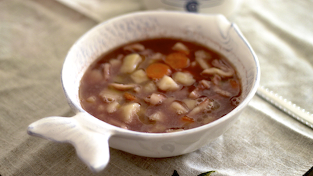 evo nas, cenjeno bralstvo, v naslednji epizodi kruhovinskega eksperimentiranja … tale je dodatno povezana z rubriko nič ne sme iti v nič, nastala pa je ondan, ko se med gledanjem v pisker z dvema dobrokilskima hobotnicama (za v solato na džizusovi vselitveni žurki) nad mojo plešnatosivo glavo pojavil velik vprašaj, pod njim pa v mali sivi celici naslednja misel: zakaj točno že tole župo mi zmer stran odlijemo??? … kaj pa če je enkrat ne bi? … hobiko namreč kuham tako, da jo vržem v pisker, prilijem malo olivčka in ravno toliko vode, da je komajda prekrita … in potem jo počasi puščam brbotati toliko ur, kolikor kil tehta (če bi bil jaz hobotnica, bi me torej kuhal dobre štiri dni) … med kuho se hobotnica skrči ful, ker pač supti vode ful … in ta voda je v bistvu župa …