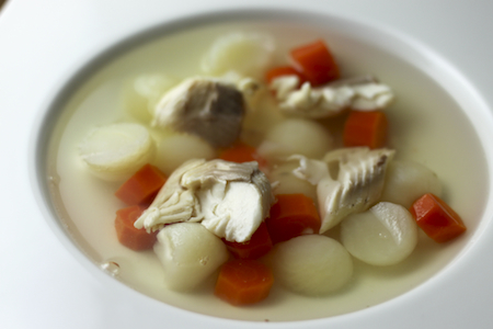šarenko sfiletiraj in okostje z glavo in kosi amurja vred prelij z mrzlo vodo in pristavi na srednje močan ogenj … nakockaj peteršiljevo korenino, por, čebulo, janež in rumeno korenje ter dodaj k juhi … prideni še česen, lovorov list in nekaj zrn črnega popra, ter počakaj, da juha začne nežno vreti … takrat jo brž deni v na 120 stopinj segreto pečico, kjer bo lepo počasi vrela dobro uro, tebi pa se ne treba zajebavčkat s premajhnim ali prevelikim ognjem … na koncu jo precedi, počasi, po zajemalkah, skozi gosto bombažno krpo, okej? … ne pozabi je še posoliti!