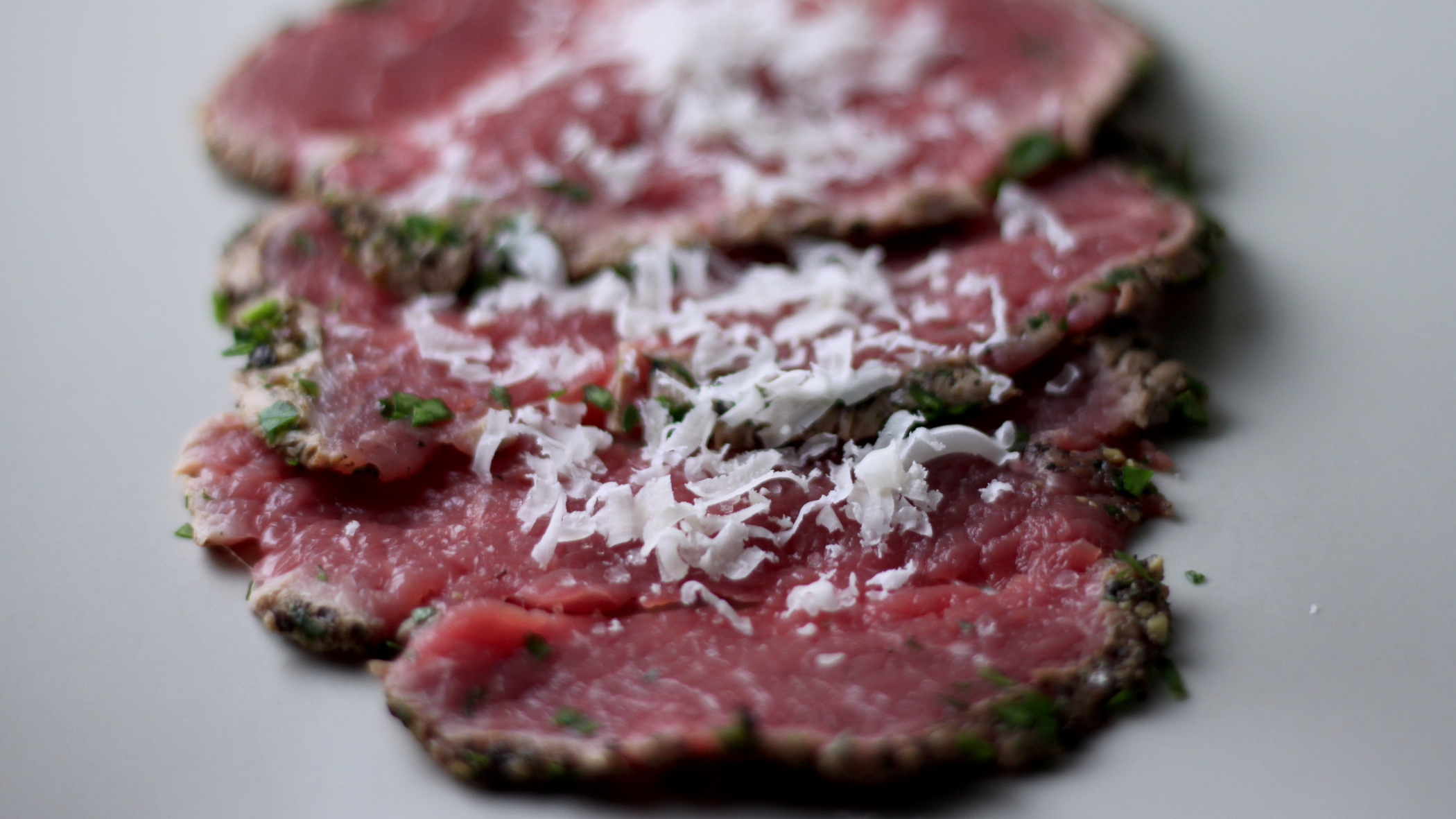 Piscu tehle vrstic se zdi Ramsay vendarle malo preveč egotripaški model, ampak – hej, človek združuje dva ultimativna egotripa: (resničnostno) televiziranje in vrhunsko restavracijsko kuharijo, pri tem pa se s knjigami lepo približuje krožnikom navadnega ljudstva. Še posebej cenim njegovo knjigo Gordon Ramsay Makes It Easy, v kateri je tudi recept za preprosto nadgrajen goveji karpačo, pri katerem kos uležanega govejega fileja povaljaš v zdrobljenih poprovih zrnih in trdno zaviješ v alufolijo. Zvitek nato postaviš v hladilnik in po eni uri z vseh strani (po pol minute na stran, recimo) na suho opečeš v razgreti ponvi. Ohlajen zvitek gre spet v hladilnik, uro pred serviranjem pa v zamrzovalnik, da se nato lepše reže. Ko ga odviješ iz folije, ga le še povaljaš v sesekljanem peteršilju, narežeš na tanke rezine (ki jih med dvema plastema folije s tolčenjem še stanjšaš), položiš na s pehtranovo gorčico in olivcem zabeljene laske ledenke in potreseš s solnim cvetom, nastrganim parmezanom in, če ga le imaš, nalistanim svežim tartufom.