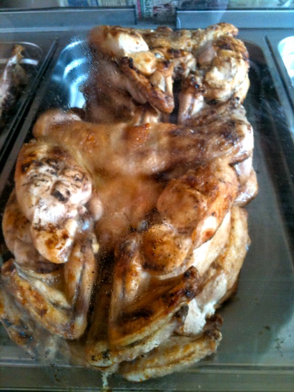 no, dobro, če je človek vztrajen in lačen, potem že kaj najde … po možnosti vse naenkrat … tele sploščene in na odprtem žaru pečene kure