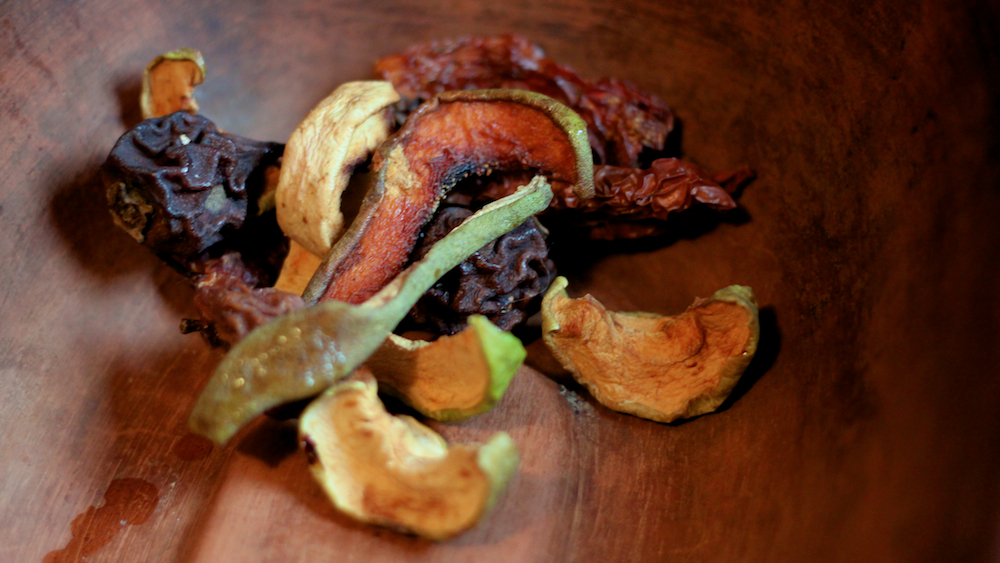 - radodarna pest suhega sadja (če si slovenistični purist, vzemi samo hruške!)
