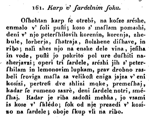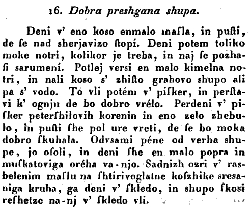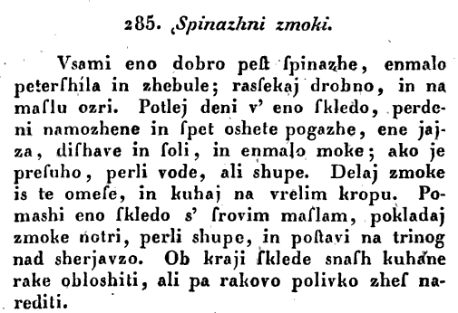da kruh in vino ne bi padla v kategorijo onih, ki se kulture spomnijo samo 8. februarja, se bomo za trenutek ali dva še pomudili pri prejšnji sredi … tokrat s faksimilom receptov iz vodnikovih kuharskih bukvic … začnimo s prežganko, recept se tudi čisto normalno bere, edino težavo sem imel s tolmačenjem besede ozri, ker sem pač najprej sklepal, da še malo pogledaš tje v skledo … vodnik je seveda mislil ocvri, a kako naj bi bili že takrat vedel, da se to tako napiše, ane?: