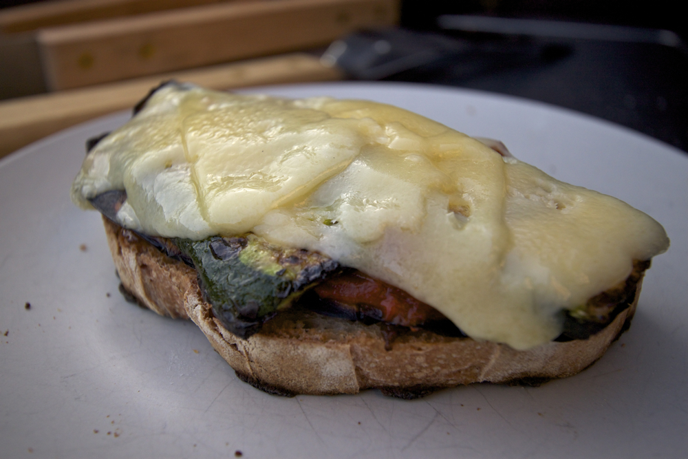 izza marsikakšnega vogala boš čez kakšen mesec in pol zaslišal glaske, ki te bodo skušali prepričati, da se začenja sezona žarjenja (ali kakor koli že po slovensko imenujemo grilanje = peko na žaru) … no, od tukajle prihaja čisto drugačno sporočilo: grilanje je neverending story, kot tenis … če vsaj malo več kot s polovico očesa & ušesa spremljaš športno dogajanje si namreč opazil, da je tenis edini šport, ki nima sezone in takorekoč laufa po sistemu perpetuualnosti: takoj ko se ena sezona z mastersom kao konča, že v brisbaneu zatežijo z novim turnirjem … in tako se oni švicarski vzmetni r počuti kot bill murray v groundhog dayu, saj vedno ruši vse pred sabo, dokler ne nabaše na nadala in ostane brez nade za zmago … od turnirja do do turnirja, vedno isto, celo leto, vsako leto … tudi napotnik vedno znova sooča z jeseni prodobljenim webrom in treba je reči, da sta se v kratkih zimskih dnevih in dolgih večerih že dodobra navadila drug na drugega … sicer odnos med njima še ni prerasel v čisti zen, ampak sta na dobri poti, saj sta se v rednih, skorajda tedenskih seansah že dodobra seznanila in sprijaznila z navadami, posebnostmi in muhami drug drugega … no, po obveznem testiranju rešetk in zmogljivosti gorillcev na stejkih, se je na vrtu chefovinskem še precej tega kurilo in kadilo – do črnega se je napeklo cel pisker rdečih paprik za ajvar, kolateralna korist početja pa je med ajvarskim upržavanjem (jasno, na stranskem webrovem gorilcu ki se je izkazal tudi pri poširanju polenovke in ozimničnem zavrevanju jesiha za vložene kumarice in paprikazemf) pomalican grill sendvíć: