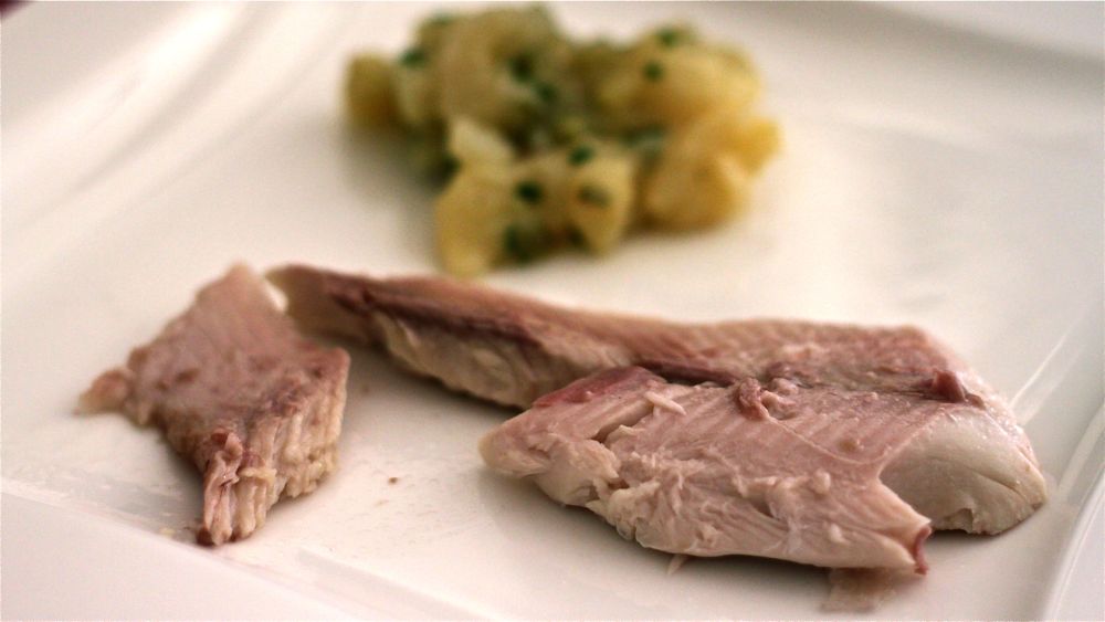 takole pripravljene sem nato še narezal na centimetrske kolutke in z njimi dopolnil mozaik silvestrskih snackov … nežnega dimnega tretmaja so bile deležne tudi v žlaborski mikro ribogojnici šolane postrvi, ki smo jih še tople pomalicali s kartoflsalatom: