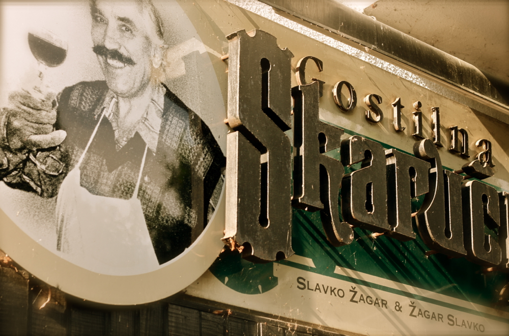 ko sem bil prvič v skaručni nisem vedel, da je skaručna Skaručna … smo se kar tako ustavili in hoteli užgat eno malo malco na vrtu … mimo je pribrundal stric z impozantno frajerskimi in šarmantnimi brki … v roki je nosil štefan vina, postavil ga je na mizo, nazdravil znami in najprej iz enega, nato pa iz drugega rokava stresel onelinerski vic in duhovito smislico domislico … ko smo se zahihitali, si je zadovoljno zavihal brk in se šel hecat k naslednji mizi … vmes je, če mu je bila kancona ali arija na ozvočenju še posebej ljuba, povzdignil glas, suvereno preglasil originalnega pevca s plošče in pokasiral aplavz vseh navzočih … in tako vedno, ves čas, ko je bila gostilna odprta … zdelo se je, da je zaloga vicov in dovtipov še večja od zaloge krač, ki so postale zaščitni znak njegove oštarije … hecal se je z vsemi – s tetami, fotri, mladinci in otročadjo … pod kontrolo je imel vse place v gostilni, vsa omizja v teh placih in vsakega gosta vsakega omizja … in seveda vse, ki so delali v kuhinji … bil je utelešenje besed gospodar, birt, krčmar, gazda, šef, majstr …