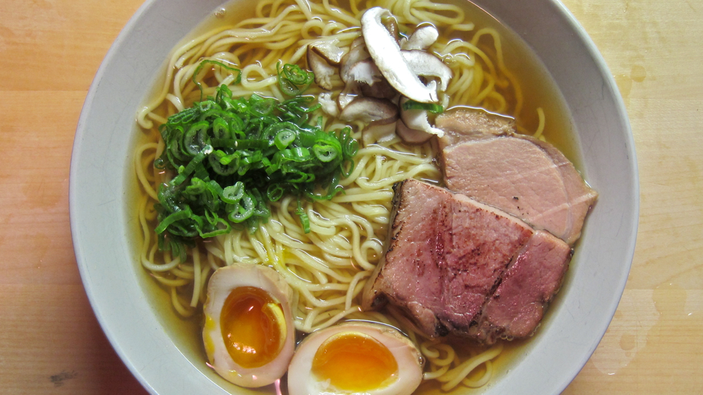 ramen je v zadnjih letih postal mitska kulinarična beseda … ramendžinice po londonu, new yorku in ostalih trendsetterskih metropolah rastejo kot s cukrom nafilan kvasni nastavek pri petindvajsetih stopinjah (to je kao poskus pekovske metafore, hehe) … skupaj s popularizacijo pa prihaja tudi ponudbena diverziteta – tako po kakovosti, kot po ceni ponujenih skled, ki – v nekaterih hype izkoriščajočih poslovnih modelih – skledo nudlov v župi prodajajo tudo po dvajset evrov in več … ramenizacija s sabo prinaša tudi študirajoče posameznike, ki puristično kopljejo po zgodovini, pravilih, receptih, tehnikah in ostalih z ramenom povezanih parafranilijah … in ti študirajoči posamezniki za sabo povlečejo še večjo gmoto nahajpanih kvazi-purističnih bleferjev, ki so predvsem glasni, ko gre za presojanje, kaj je pravi in kaj nepravi ramen … skratka: po svetu se z ramenom dogaja nekaj takega, kot pri nas s hamburgerji, kjer se reč že nevarno približuje točki, ko bomo s skupaj z elvisom j. kurtovićem zapeli dabogda crko rokenrol (kad ga svako svira), pri čemer bomo seveda rokenrol zamenjali s hamburger, svira pa s peče … na japonskem, odkoder prihaja, ramena, jasno, ne žgejo šele v zadnjih letih, ampak imajo za sabo že dobro stoletje prakse in zato tudi fino razvitih že celo rajdo različnih stilov ramena … napotnik v študiranju omenjene materije ni šel v blazne historične globine in stilske širine, je pa s čitanjem davidov changov in še nekaj z njim asociiranih piscev kuharjev prišel do dovolj obsežne bere bazičnih spoznanj in tehnik, da si je drznil pripraviti in postreči svoj prvi (ne pa tudi zadnji) ramen … takole je (bilo) s tem:
