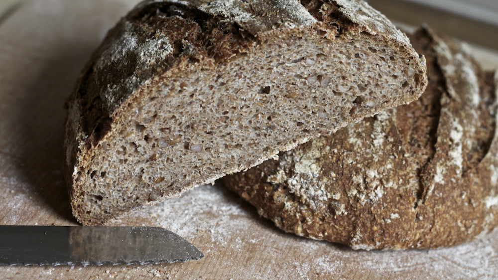 pečica naj bo razhajcana na 230 stopinj (lahko tudi še kaj čez), na dnu naj bo protfan poln vode … vzhajano testo zvrni na pomokan lopar (ali na pomokan ali s peki papirjem obložen segret pekač), ga zareži z ostro britvijo in peci 40 – 45 minut … ohladi na rešetki, nareži in med grizljanjem razmišljaj, kako fajn je, da nisi paleo …