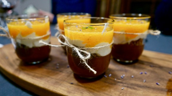 čokoladni mousse, domača granola, sladka smetana, kakijeva krema, sivka