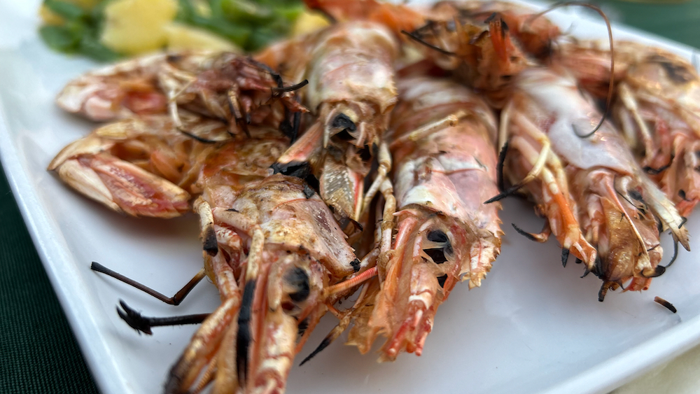 zvečer pa smo šli preverit, kako kaj hajcajo gradele v naši lokalni konobi in ugotovili, da so kozice s krumpirom in mahunima zunaj ravno prav osmojene, znotraj pa super sladke in sočne,
