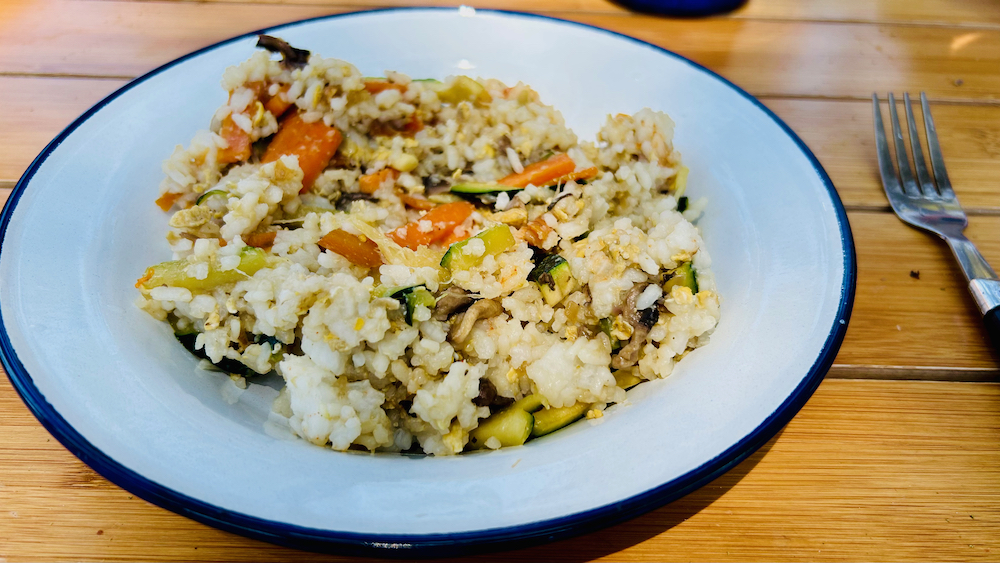 nu, in da se ne bi čisto podalmatinil sem v kempinsko kuhinjo pod milim nebom pripustil tinejdžerki gimnazijalki, ki sta se tudi letos v okrnjenih razmerah dobro znašli in zbrano druščino nafutrali s čisto proper praženim rižem