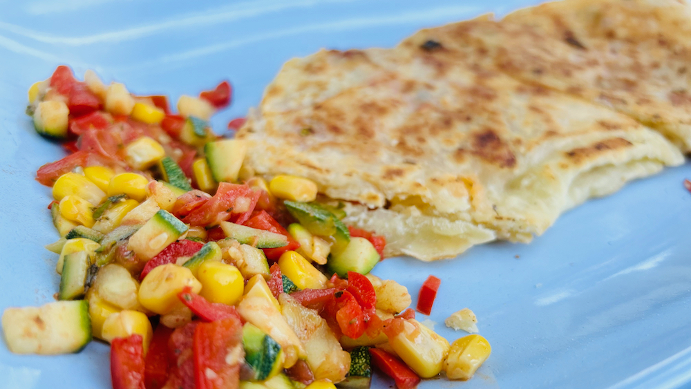 malo kasneje pa še z južnoameriško inspired v ponvi pečeno calzone picico z eno tako fletno solatko: