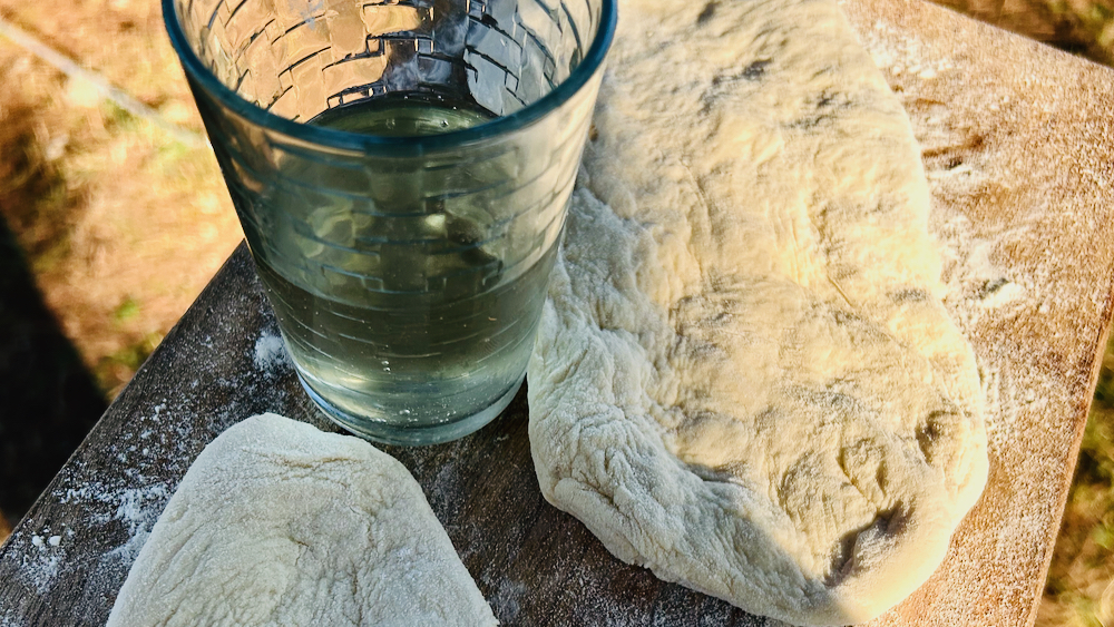 premaži z oljem in peci v na srednje segreti ponvi; kakšnih pet do sedem minut po eni, nato pa na manjši temperaturi še po drugi strani … pečena čapatija sem del v kozico, ki sem jo poveznil na vrh one kuhljajoče čičerike, da sta ostala topla, medtem ko sem v ponvi opekal še nek združenoervropski mladi sir: na hrvaškem kupljena reč je imela grško ime, izdelana je bila pa na poljskem … na koncu je vse skupaj še kar nekako izpadlo: