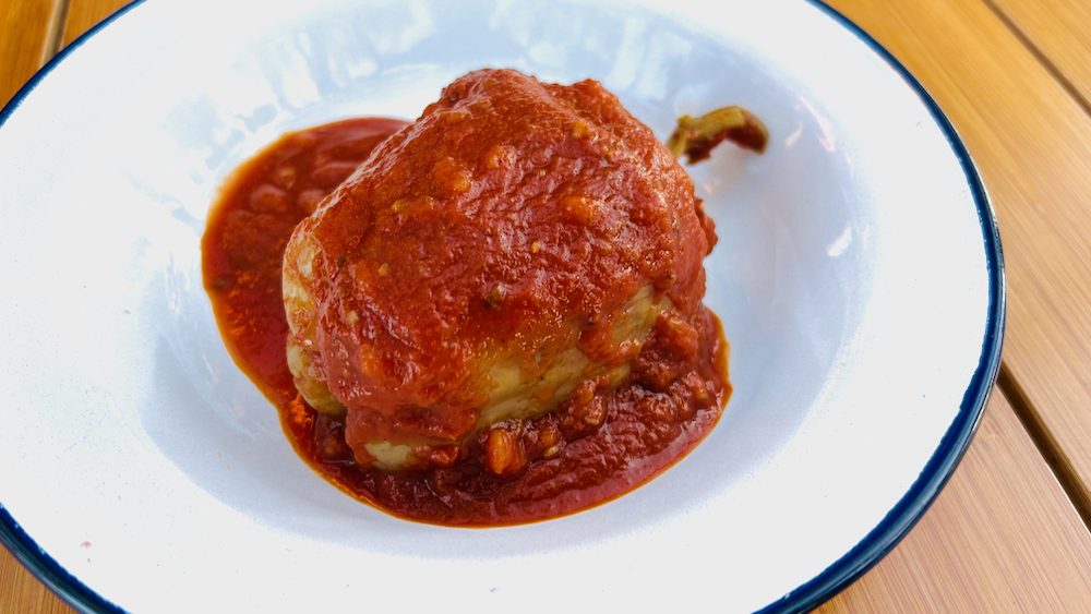 tle nimam kej velik za nabijat in po nepotebnem filat prostora – fila sem namreč papriko … pol unga veganskega faširflajš surogata, ki se je še valjal v čošku kempinskega hladilnička sem namreč prepražil na čebuli in česnu, dodal malo gverc, zmešal z rižem za domaća jela in z mešanico nafilal pol ducatana vrhu zarezanih in oćiščenih žoltih babur … te sem polagal v pisker s tričetrt litra posoljene, popoprane in z vodo malo razredčene pasate … od tu je šlo po ivačičevi fori: paprike sem najprej zavrel in takoj odklopil vatro … potem sem šel na hitro zmlatit vodo in n pogledat, kako tamau pogi fašira vingija, ko je prišel v cilj sem paprike spet pripalil in slabi dve uri kasneje, ob sončnem zahodu, smo jih že snedli: