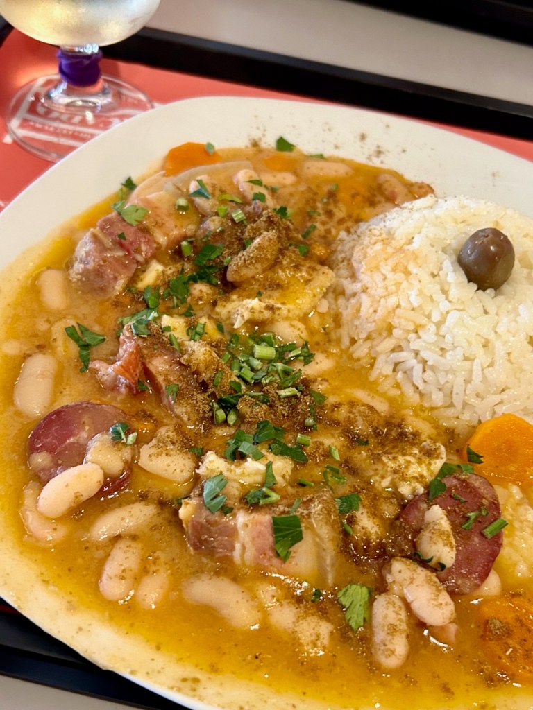 še smo v portu (za odtenek raje ga imamo, kot lizbono), pravzaprav v vila novi de gaia, kot se formalno reče delu porta na levem bregu reke douro, kjer se nahaja večina portovskih kevdrov pa tudi mercado beira-rio, kar pisan in vesel food court, kjer so napotnikov ata v vsej oni bogatiji od ponudbe takoj uočili tripas, ki jih delajo z belim fižolom, korenjem, klobaso, slanino in – dobr move! – radodarnim posipom mletega kumina: