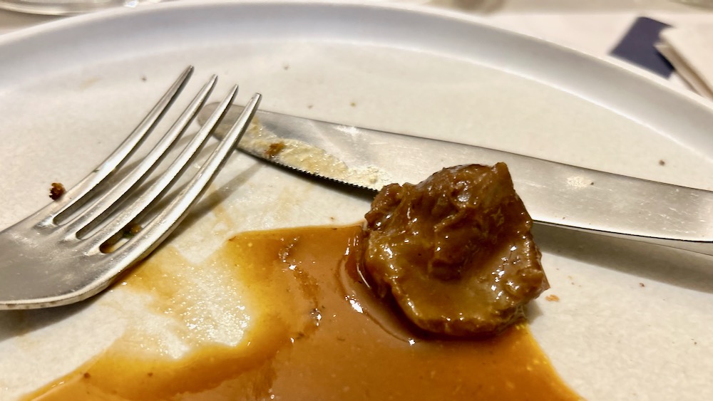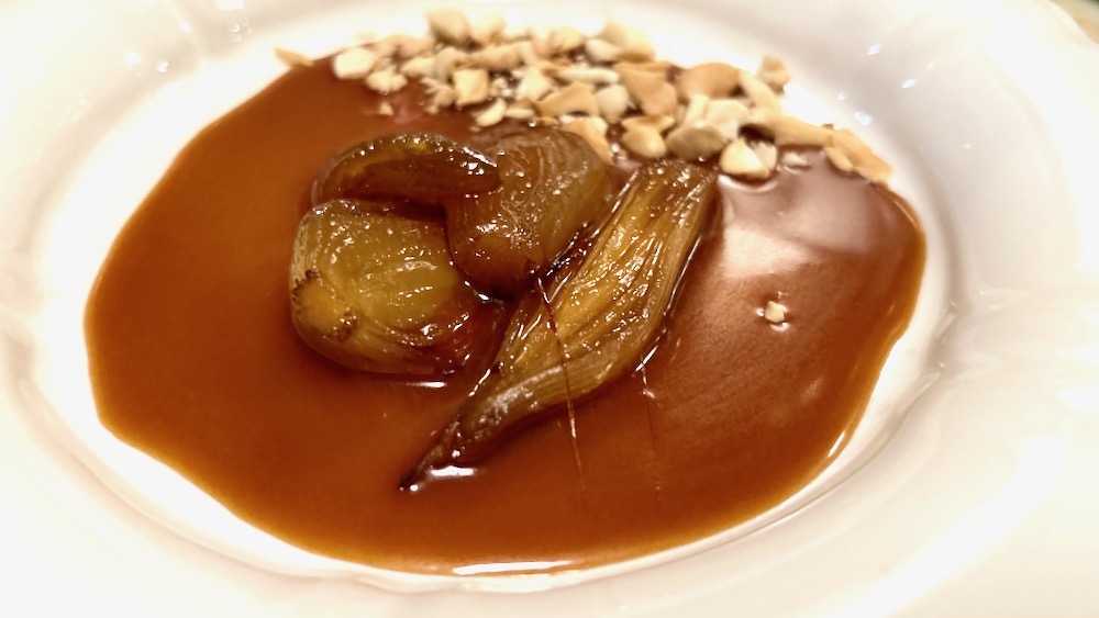 zadnji oddelek so, logično, cukri … in malo nas je medlo, da tamle v predzadnji liniji piše nekaj čebuli podobnega in celo večerjo smo tuhtali, da se mogoče kakšni njihovi cukrniji reče čebula, pač tako kot je pri nas čebelji pik … no, na koncu se je izkazalo, da to dejansko čebula je bila, na putru in cukru zmehčana in s karamelo in praženimi oreščki postrežena in ful dobra! (zadnja misel izraža mnenje avtorja in ne nujno – oz. sploh ne – cele ekspedicije)