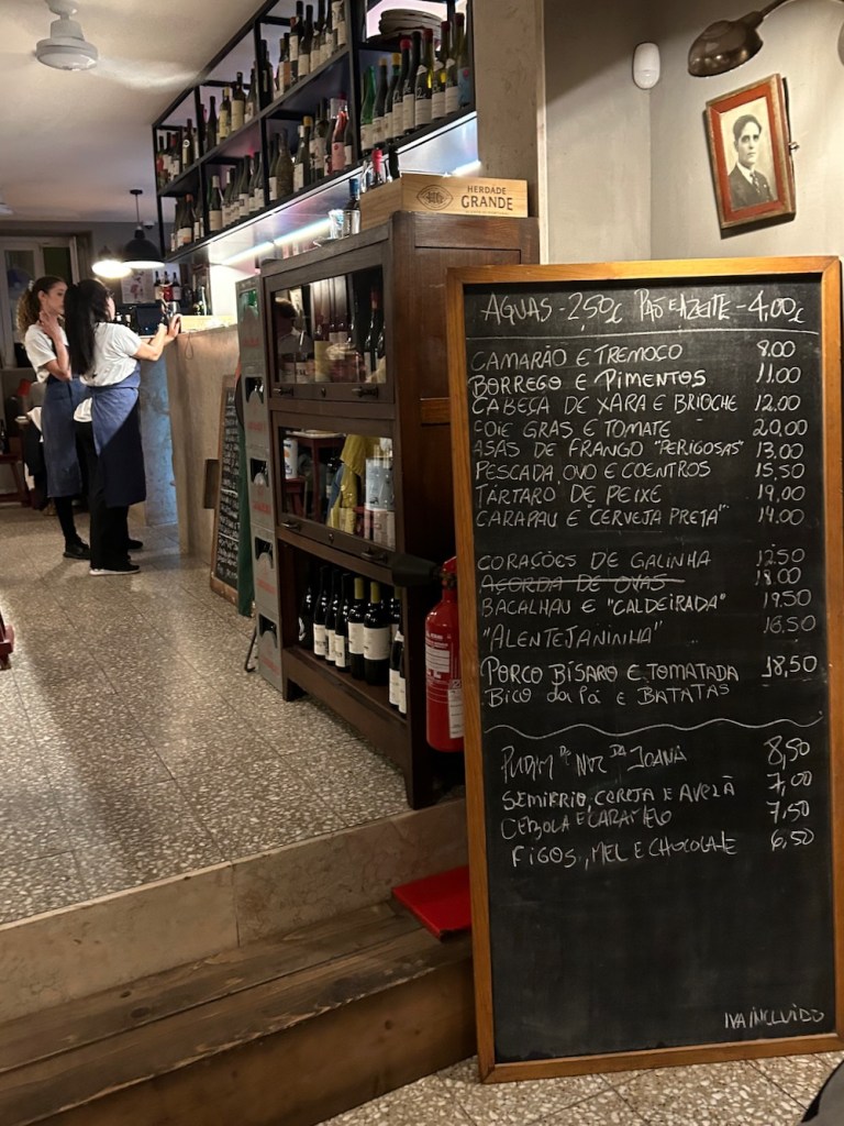 ker smo že bili v mestu, smo seveda za nekaj postaj sedli tudi na znameniti tram 28, ki ga je vešče šofirala kljub večernemu polmraku s sončnimi očali opremljena mladenka … tam nekje blizu zadnje postaje smo našli še eno fletno birtijo, taberna do calhau se ji reče in za našo zadnjo večerjo je bilo na voljo tole: