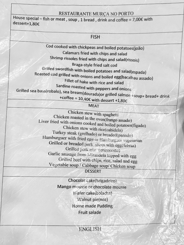 brigadir smo mu rekli, malo zaradi titovke, malo zaradi tistele torte, s katero se je pustil slikat (in se imenuje brigadeiro), predvsem pa zaradi suverenega šefovanja v sali gostilne murça no porto … ta fura tako, da si gostje iz ponudbe izberejo eno od treh žup, eno od osemnajstih glavnih jedi, eno od šestih sladic, pijačo (ja, vinho inkluziv) in kofe in za vse našteto brigadirju na koncu odvalijo 8,8 evra …