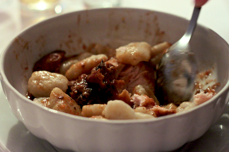 bakalar na belo treba samo namakat, namakat, ga skuhat in potem v vročem olivnem olju pocvret česnek, ga pobrat ven in vroče olje polit po ribi in tolčt na roke … vmes lahko daš samo vode, v kateri se je kuhal … in na koncu malo peteršilja, to je vse …