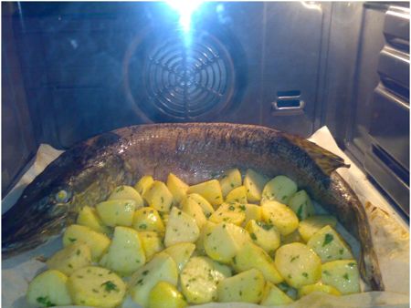 zeds je sicer majka na roštilju, ampak ker za pomiritev namaka trnke v vodo, se že spodobi da nam pove kaj o tlačenju tri-in-pol-kilske ščuke (jep, to je ta manekenka iz fotke) v pečico … tole je njegov prispevek (fala, stari!):
