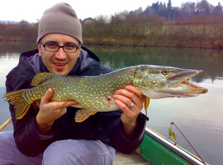 DOLENJSKA ŠČUKA V PEČICI S KROMPIRJEM Naša ribolovna druščina se večkrat odpravi lovit ščuke. Veliko večino v zadnjih letih ujetih ščuk smo vrnili nazaj v vodo. So pa trenutki, ko za kakšen poletni piknik ali večerjico kak kos namenimo tudi sebi. Ščuke je v Sloveniji dovoljeno loviti z umetnimi vabami od 1.maja do 1. februarja, mera dovoljena za uplen se giblje med 50 in 70 cm, cena dnevne ribolovne dovolilnice pa med 10 in 25 evri. Z eno dnevno ribolovno dovolilnico lahko upleniš eno ščuko. Včasih smo lovili na Cerkniškem jezeru, Uncu, akumulaciji Mola, zadnja leta pa smo več na Krki in Blejskem jezeru. Ampak reka Krka je zakon, predvsem zaradi Poldeta, lastnika picerije Eldorado v v Irči vasi pred Novim mestom, ki nam nikoli ne zaračuna izposoje čolna iz svoje flote. Celo električni motor in akumulator posodi, če ga nimamo s seboj, ob vprašanju koliko smo dolžni, pa samo zamahne z roko. Uh, ce samo pomislim, koliko bi nas za tak luksuz opilili na Blejskem jezeru … Že nekaj let zapored se najbolje lovi v januarju – število prijemov je sicer manjše kot jeseni ali spomladi, ampak v povprečju prijemajo večje ribe kot v toplejših mesecih. Tudi zadnji dan letošnjega januarja ni bilo nič drugačen … Na čolnu smo zmrzovali, saj od napovedanega sončnega dneva ni ostalo nič, razen sive tmurine in temperature med 0 in 2 stopinj celzija. Dvakrat smo se privezali ob obali, da smo se v bližnjih kafanah malo pogreli, hehe. V naši ribiški ekipi smo sicer sami fejst fantje, ampak ščuke vseeno ne prijemljejo na nas. Najpogosteje jih vabimo s silikonskimi ribicami, voblerji (ribice izdelane iz lesa balse) ter z raznimi kovinskimi vabami. Ponavadi, in to samo pozimi, uporabljam Rapalino vabo Husky Jerk, ljubkovalno Zelenko. Januarja je Zelenko vedno uspešen, plava sicer tik pod površjem, a oddaja takšne vibracije, da se mu lene ščukice ne morejo upreti. Po moje jih bolj znervira, pa ga pridejo prej odgnat kot pomalcat… No, že tretji met je napovedal zanimiv dan, saj je velika ščuka skočila za Zelenkom, a ga je zgrešila. Skočila je nedaleč od čolna, skoraj s celim telesom iz vode. Nas je kar prestrašila, a obenem dvignila adrenalin in ribolovno voljo. Zgodaj popoldne se je malo stran od mesta prvega vuša (tako rečemo ribjemu skoku iz vode), zgodil še en ščukin kiks Zelenka. Hitro sem navil laks, vabo takoj še enkrat vrgel in kmalu začutil težo ribe na palici. Lenivka je bila zelo pasivna, predala se je brez borbe, edino pri dvigu na čoln bi se skoraj snela. Bi bilo škoda: dolžina 76 cm, teža 3,5 kg. Pomenljivo sem pogledal kolega, a me je že prehitel: “Pečica!”