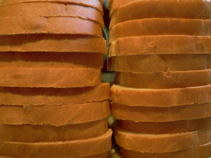 probavanje, izobljševanje, nadgradnja, predrugačitev, variacije … vse to je sicer v kuhinji dobrodošlo, če ne kar zaželjeno … ampak zdaj pride ampak, ki je namenjem predvsem chefu samemu: stari, so stvari, ki so optimalno našpičene, in se jih ne splača apgrejdat … recimo v limonov sladoled, ki je že doživel eno fletno korekturo, pač ne gre ribati jabolka in povečevati doze limoninega soka, pa čeprav ti to sugerira srebrna žlica, še posebej pa z eksperimentom ne skušaj nafilati razširjene familije, ker kaj drugega kot kislih ksihtov niti ne moreš pričakovat … alzo se vrnimo na bolj domača tla in na krušne variacije, ki jih chef bolj obvlada … za potrebe mlekarske industrije, ki rada melje tople sendviče je chef spekel dve štruci masleno/mlečnega kruha za toast, za roštiljado sobotnega popoldneva pa so nastale tri velike lepinje … Nadaljujte z branjem