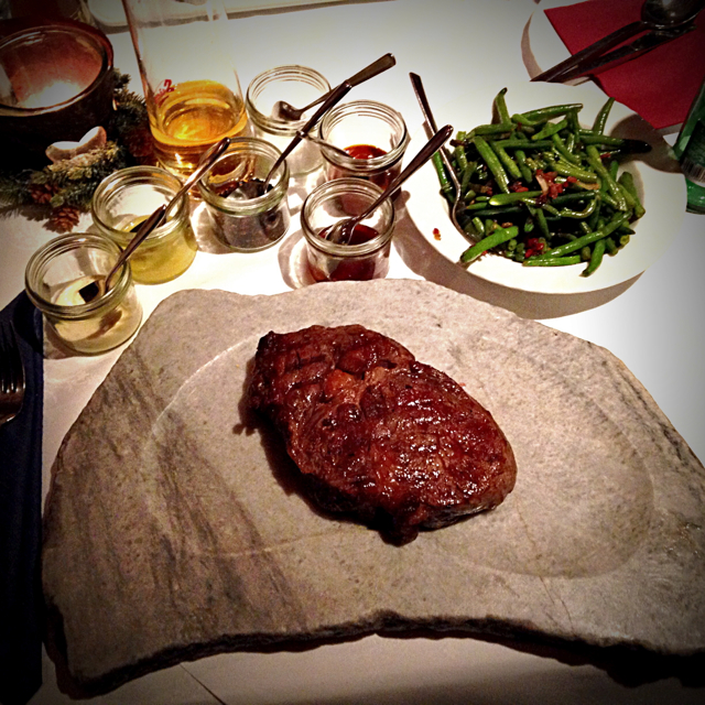 take imamo radi, ane? … in kuhajo dobro, res frajerski so bili njoki s kremasto omako iz paprik (predstavljaj si v nulo sfrulirano bazo za sataraš, prelito po drobnih njokcih), narezek z jebačko janeževo salamo (finocchiona) in hudim, na popečen kruh položenim špehom, ocvrti bučni cvetovi s scamorzo, atu napotniku pa so alelujo zašpilali tudi, ko je kelnar ob naročilu caffe-corretta predenj postavil 4.5 litrsko, s pipico opremljeno flašo krasne, mehke, iz muškata skuhane grape in je ženska njegovega življenja posnela tale tale prizor: